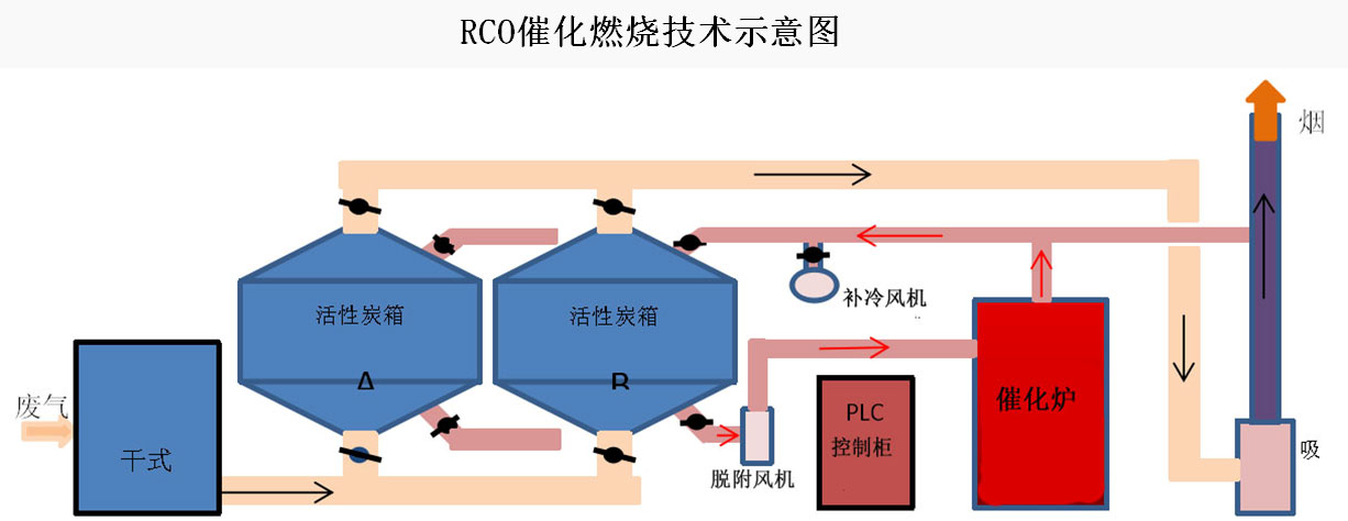 中科国奥自主研发生产的催化燃烧设备,由过滤箱、活性炭箱、催化燃烧炉、PLC控制柜、风机、风阀及防爆消防安全装置等部分组成。 适用范围:适用于中低浓度的工业VOCs废气深度治理。 适用行业:橡胶制品、工业涂装、家具制造、塑料制品、包装印刷、玻璃深加工、有机化工、铸造机械、电线电缆等。 产品特点:1、净化效率高; 2、使用方便 维护简单; 3、性能稳定; 4、安全环保; 5、运行费用低;