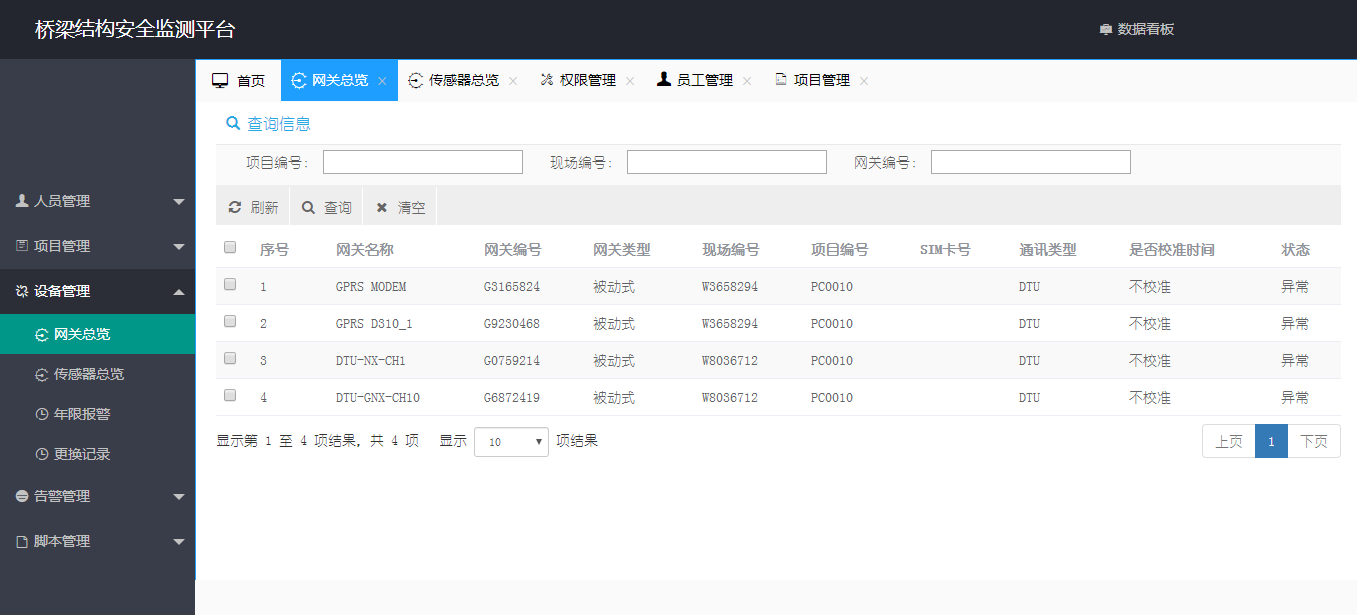 桥梁监测数据看板