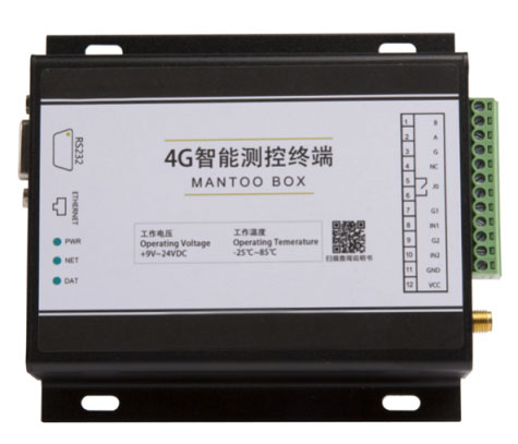 集成了RS232/RS485 接口、开关量输入、继电器输出、LAN口和无线数据通信于一体的高性能测控装置,可以直接接入各种RS485传感器、电平信号、干触点等,是实施无线测控的智能终端设备。数据的存储、周期和上报周期可以根据用户环境的要求而调整。在系统中主要应用月采集各传感器上报的数据并上传到云平台。